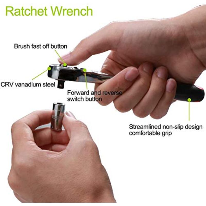 - Ratchet Wrench, Extension Bars, Spinner Handle, Bit Adapter, Universal Joint, Sliding T Bar, Torx ,Hex & Slotted Socket Bits Are Included In This Comprehensive Kit